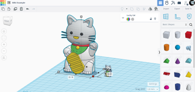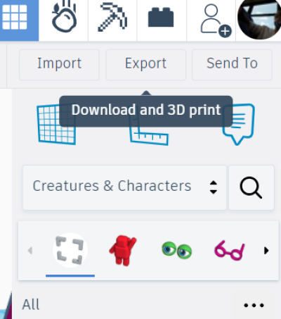Here's what I do to make it smaller without worrying if its proportionate: divide! When you select the small boxes on the corners of a placed object, you can adjust the numbers. If you want the creature/character to appear slightly smaller than your house, divide each of the object's proportions (length, width, and height) by 5. | Once you're done you will have to export your creation into an STL and you'll be ready to print | |